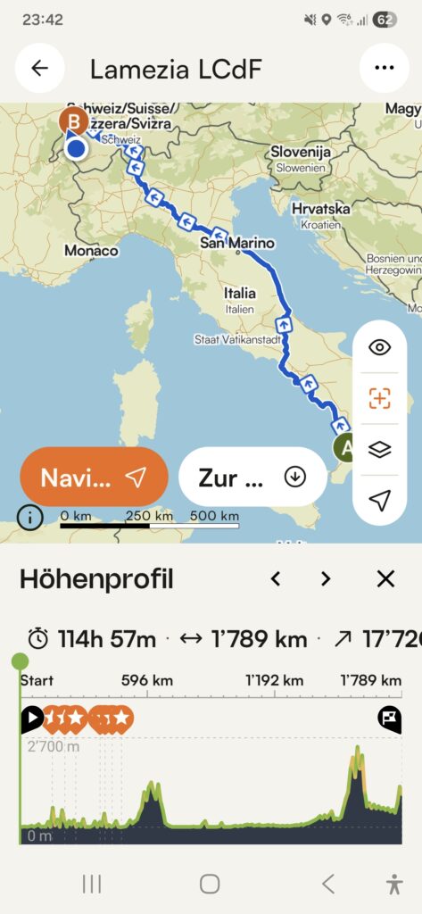 Am 10.4. fliege ich nach Lamezia. Von dort geht’s nach Hause. Ich denke, dass ich ende Mai zuhause ankomme. Wie immer habe ich keine fixen Pläne, was die Strecke anbelangt.
