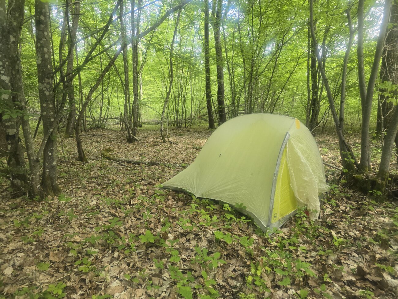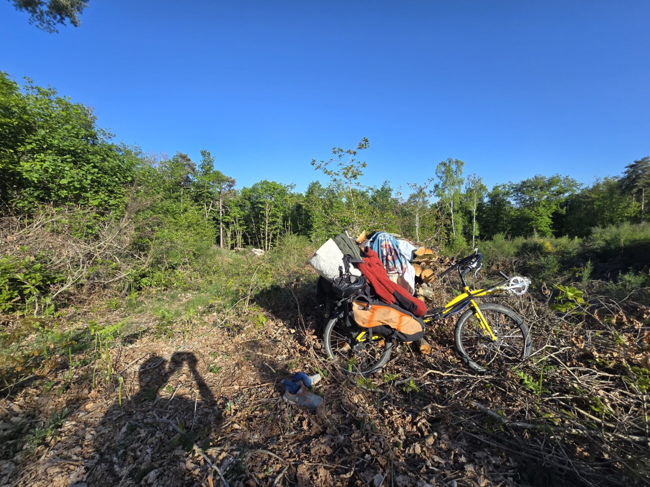 Ich fahre den Lac d’Alier entlang, für mich eher ein Fluss und da ist es hübsch. Schon wenige km nach Vichy halte ich nach nicht mal 40kmin einem Wald an und mache meine Nachtpause.